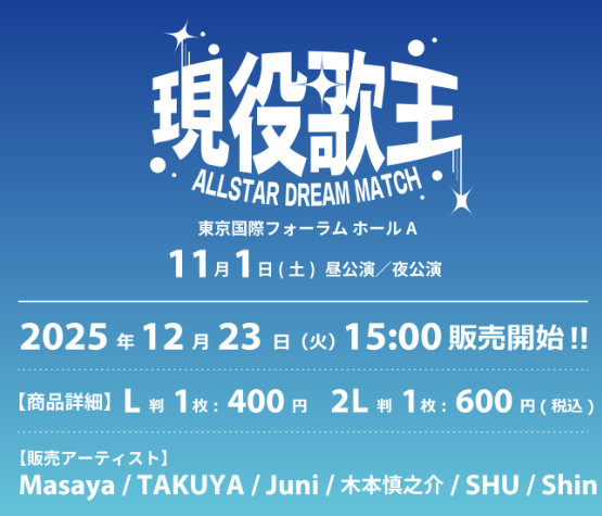 11/1「現役歌王 ALL STAR DREAM MATCH」~メモカぴあ販売中~