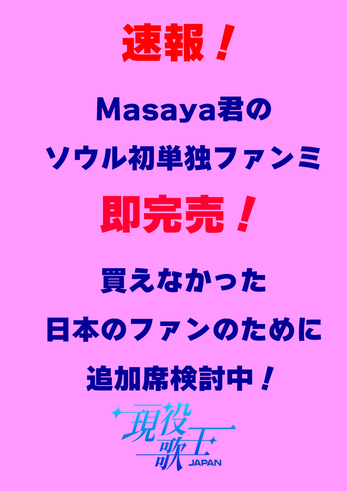 【緊急告知】Masaya君のソウルファンミ本日14時から販売開始!早い者勝ちです!